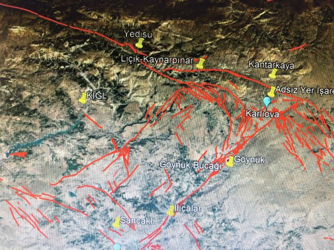 Arkadaşlar, Karlıova-Göynük arasında en son deprem 1866 yılında olmuş ve 7.2. Göynük-Ilıca arasında 1971 yılında bir deprem var 6.7. Biz Karlova-Göynük arasında özellikle dikkatli olunmasını öneriyoruz. Bu haritadan bugünlü deprem yerini de bulanilirsiniz.